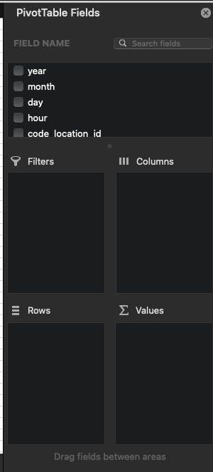 Click on the Blank Pivot created, this should open the Pivot column panel.