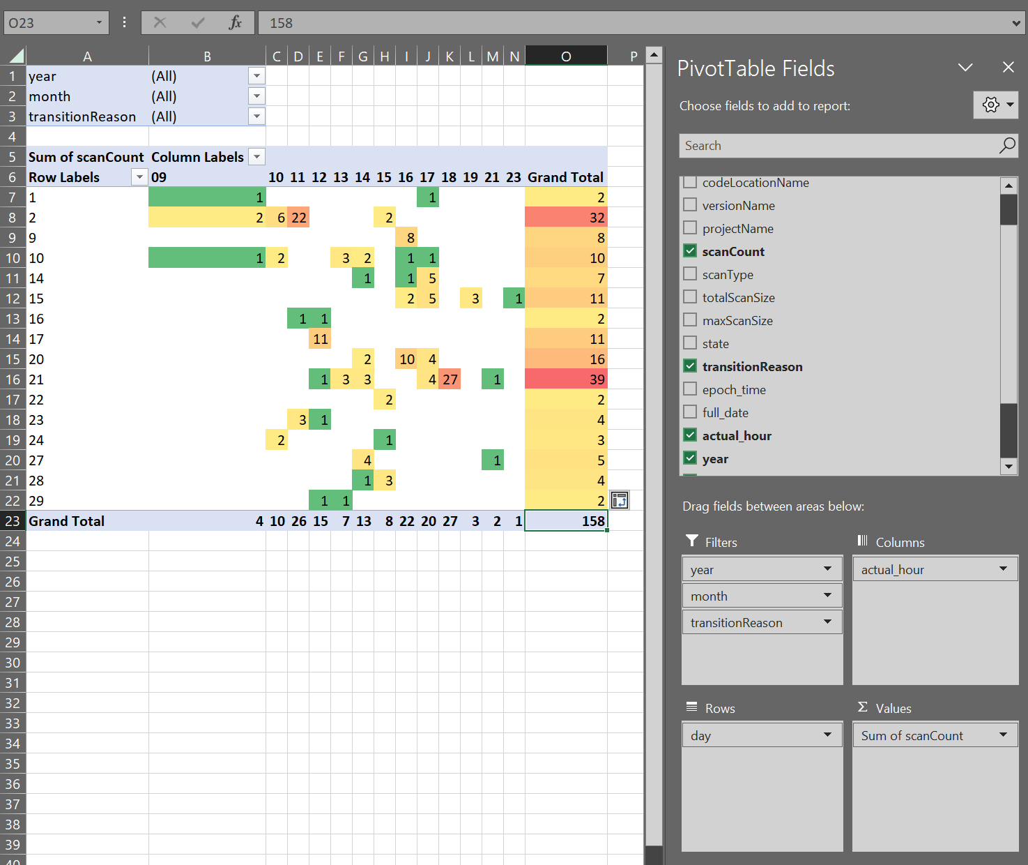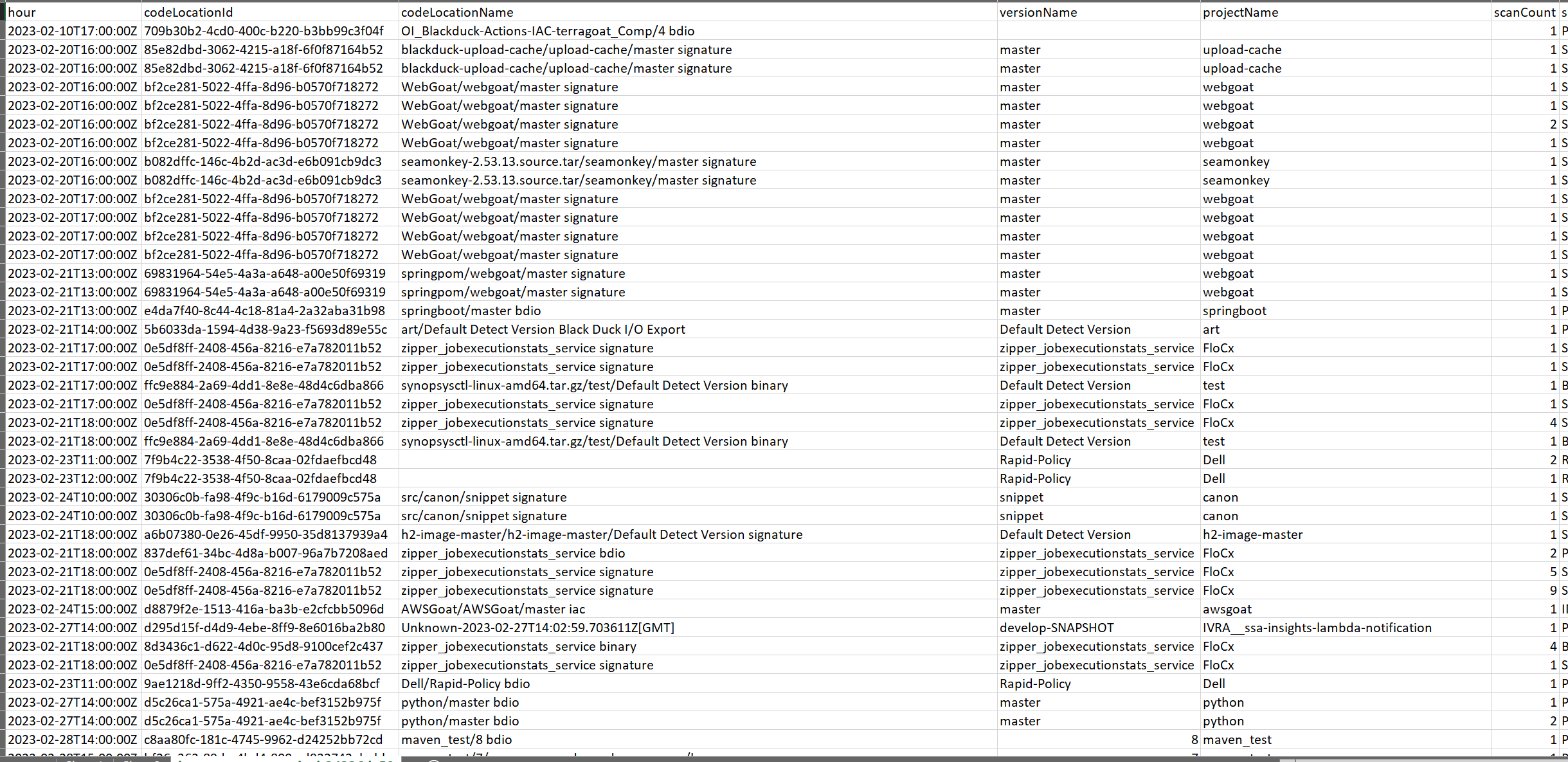 Open the heatmap-scan-terminal csv. You will see something like this - note the hour column is a combined date/time column with a time stamp: