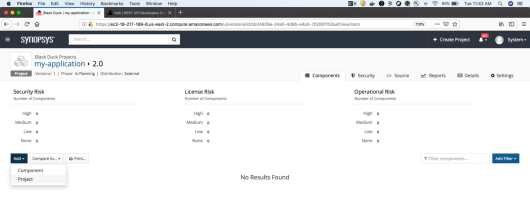 3. In the Black Duck UI, navigate to the Component tab for application project (my-application) version (2.0).