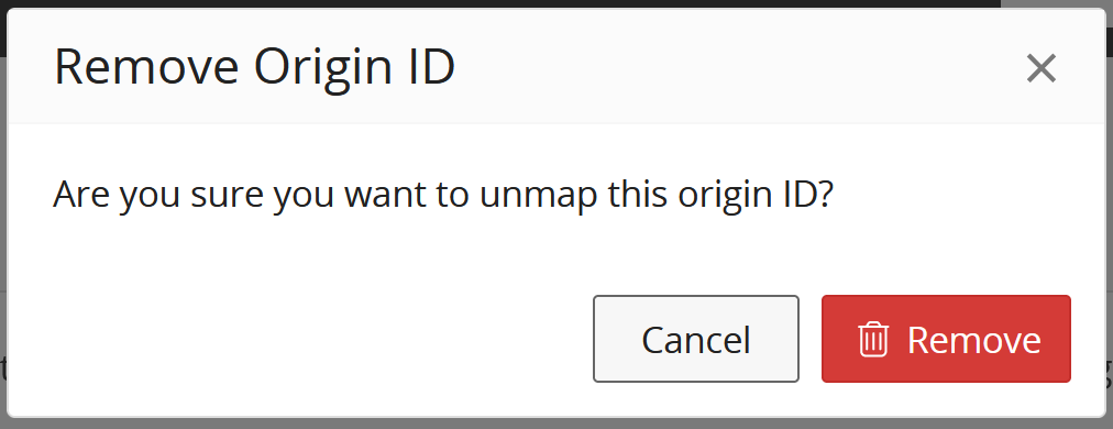 at the end of the component's row. The Remove Origin ID dialog box appears.