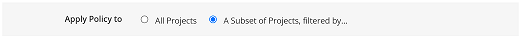 Select whether this policy rule applies to all projects or a subset of filtered projects – projects with specific properties.